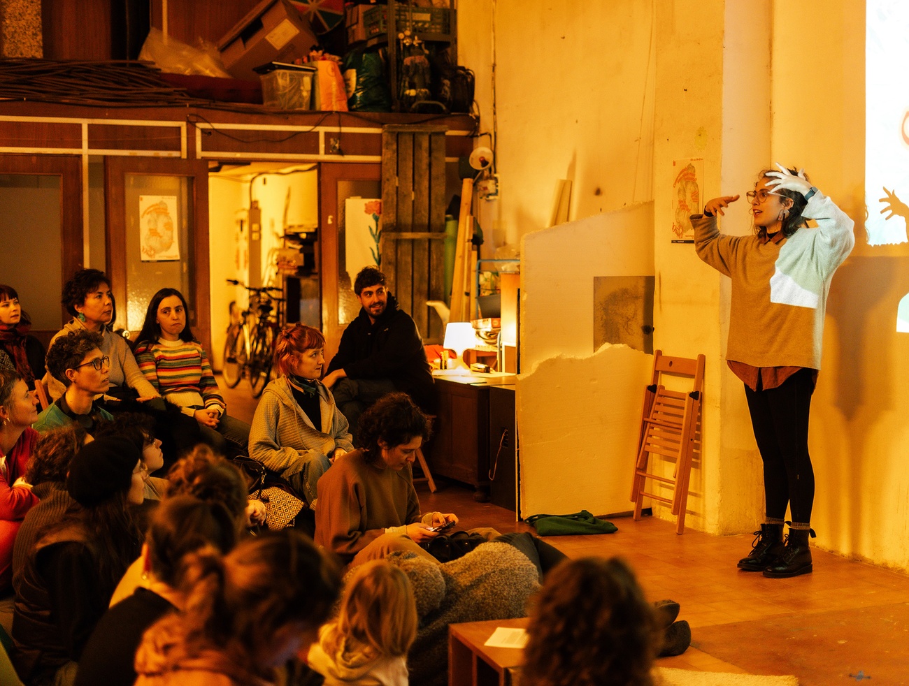 "Mijavelhas às Fontainhas: Reproductive Work and Common Territory", the workshop by Clara Sefair, proposed an exploratory work around the city that sparked reflection and discussion on the story of women’s insurgencies, resistances and stories with water as a common thing. Workshops like "FEMonumental Transformance" by Conni Holzer and “Quebrando as Barreiras com Parkour [Breaking Barriers with Parkour]” by Sara Serôdio allowed attendees to engage with physical and creative practices that challenge patriarchal structures and promote empowerment through movement and artistic expression, allowing participants to engage actively in reimagining public space.