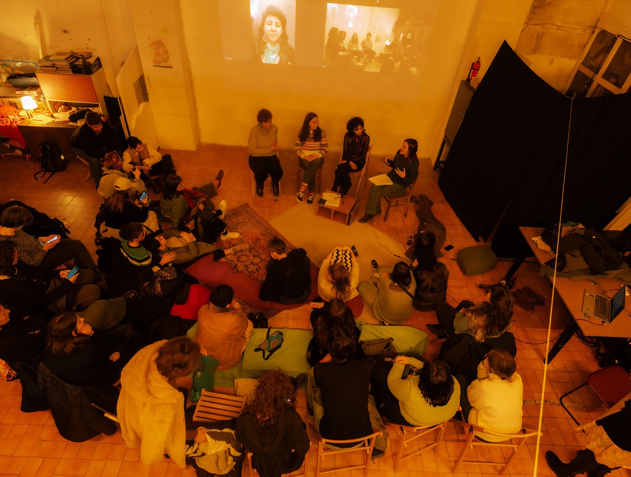 The public Encounter featured installations and a performance that encouraged attendees to reflect on the role and presence of women in public spaces. Paola Espinoza’s "From where a name becomes memory", a video installation reflecting on gender-based violence in Cuenca, Ecuador, and Paula Sitka’s “Si las paredes hablasen [If Walls could Talk]”, a photographic exploration of Afro hairdressing salons in Madrid as spaces of resistance and community, engaged the audience with themes of memory, identity, and the often-invisible narratives that shape our understanding of urban spaces. The documentary “Vozes Silenciadas: Ser Mulher e Envelhecer no Centro Turístico de Lisboa”, by Sara Larrabure, Ana Estevens, Fabiana Pavel and Adélia Veronica Silva, approached the challenges around community ties, mobility restrictions, and limited access to public spaces and essential services by older women in a rapidly gentrified city like Lisbon.
