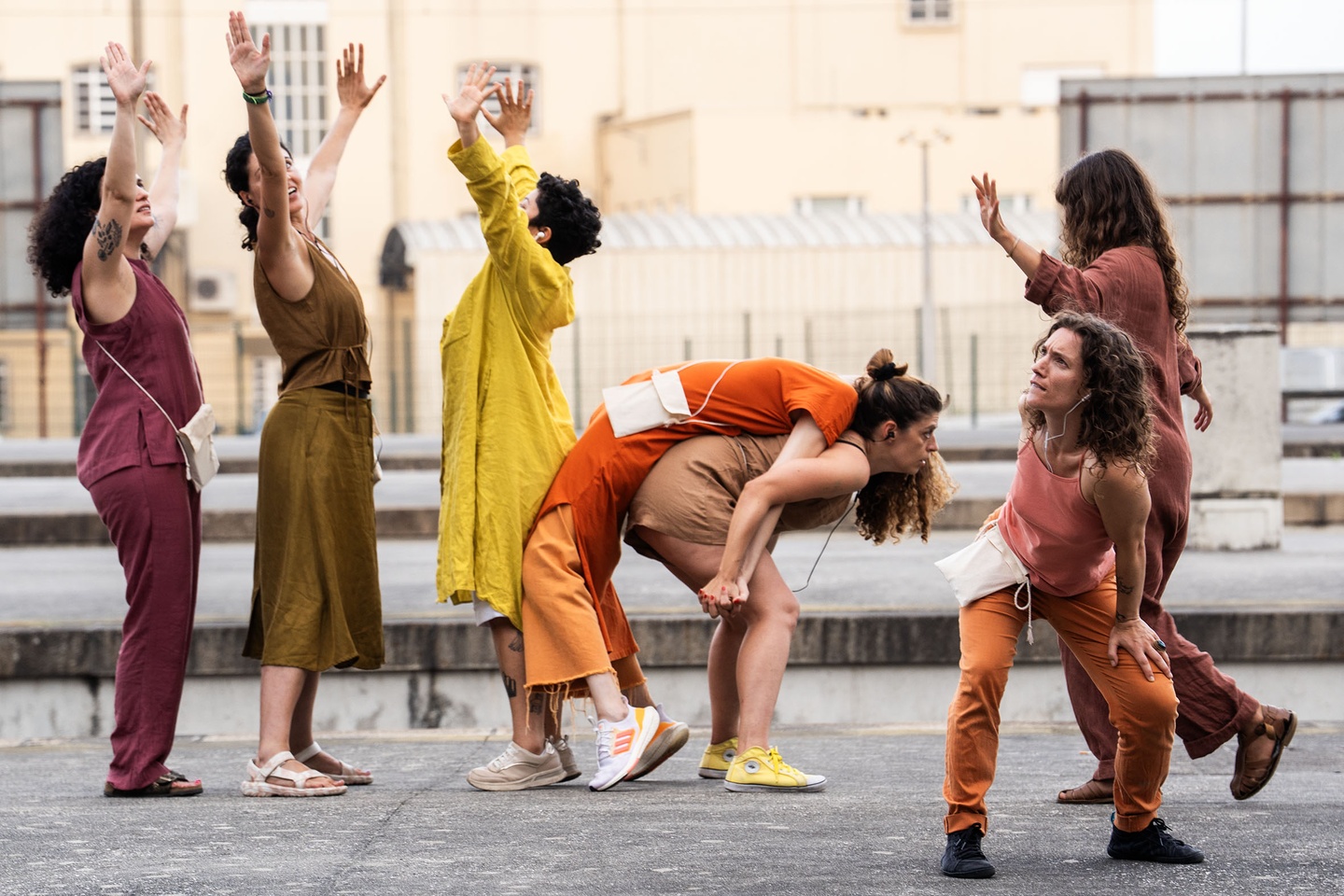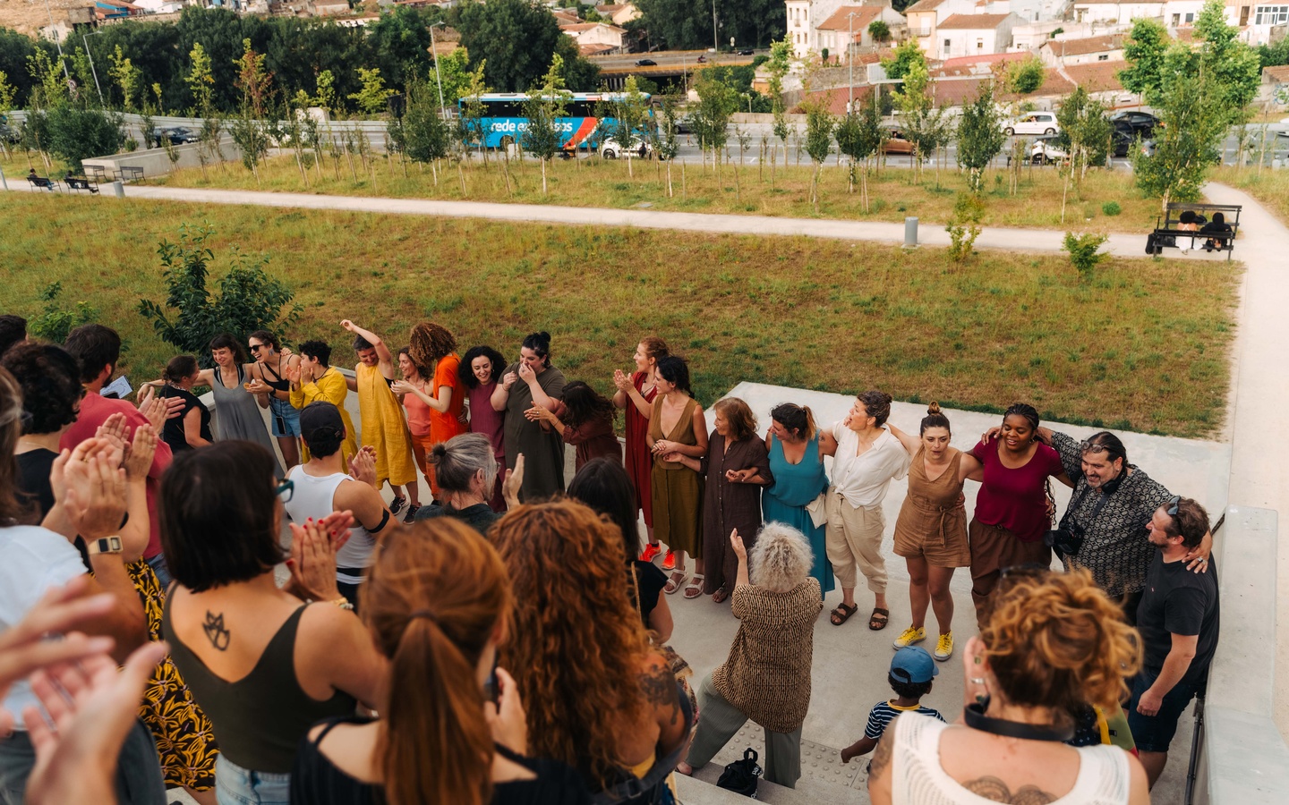 This inquiry was explored creatively throughout the sessions, researching and challenging the ways our bodies occupy public space: through presence, movement, care, disruption... We experimented with vulnerability and empathy as poetic and transformative forces of spaces and the relationships between human and more-than-human communities, creating new narratives and imaginaries — new ways of being, existing, resisting, and desiring collectively.